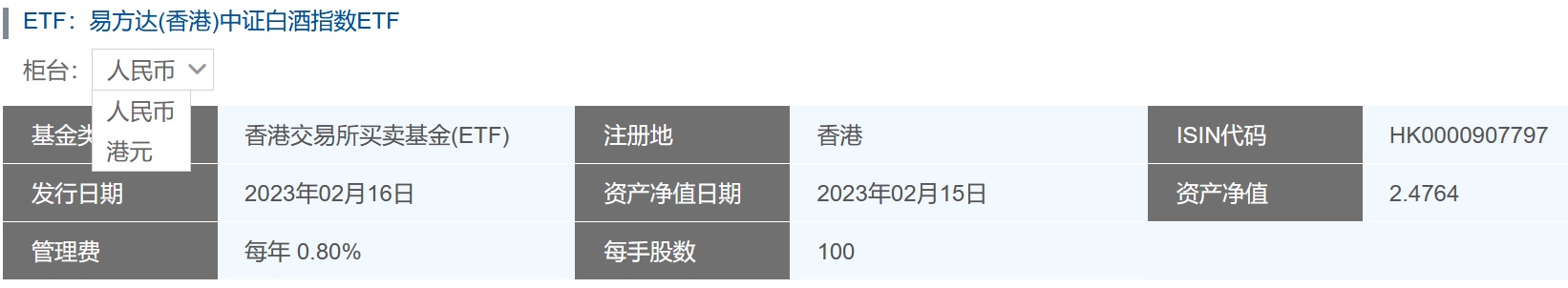 智通财经APP获悉,香港即将迎来全球首只白酒交易所买卖基金(ETF)——易方达(香港)中证白酒指数ETF。据易方达资产管理(香港)有限公司披露,公司旗下易方达(香港)中证白酒指数ETF将于2月16日发行。该ETF由易方达(香港)发行,旨在提供紧贴中证白酒指数表现的投资回报,并于2月9日至2月14日进行预认购,入场门槛300元人民币,管理费为每年0.8%。值得注意的是,该基金同时于当日被纳入成为中央结算系统多柜台合资格证券。这意味着,这支ETF将适用于“港币-人民币双柜台”(以下简称“双柜台模式”)这一最新结算模式。