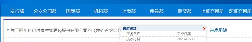 智通财经APP获悉,2月15日,证监会公布四川科伦博泰生物医药股份有限公司(简称:科伦博泰)的《境外首次公开发行股份(包括普通股、优先股等各类股票及股票的派生形式)审批》进度,目前进度已达接收材料阶段。