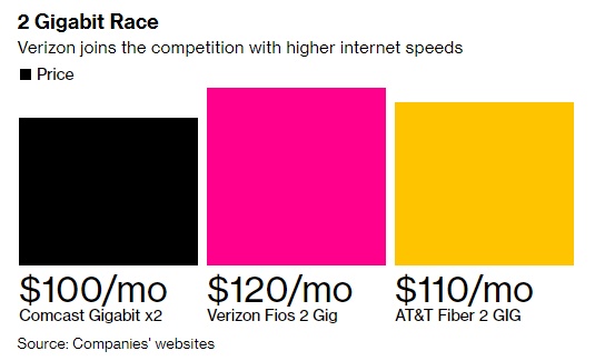 智通财经APP获悉,最近,美国宽带市场竞争激烈,有线电视运营商和无线网络运营商相互出招抢占市场份额,并将提高网速作为其竞争有力手段。周三,继康卡斯特(CMCSA.US)后,Verizon(VZ.US)成为最新一家提高互联网服务速度的宽带提供商,该公司提供的服务旨在吸引那些希望获得更强大的游戏和流媒体服务的大客户。从本周开始,纽约市的家庭和企业将有资格享受Verizon