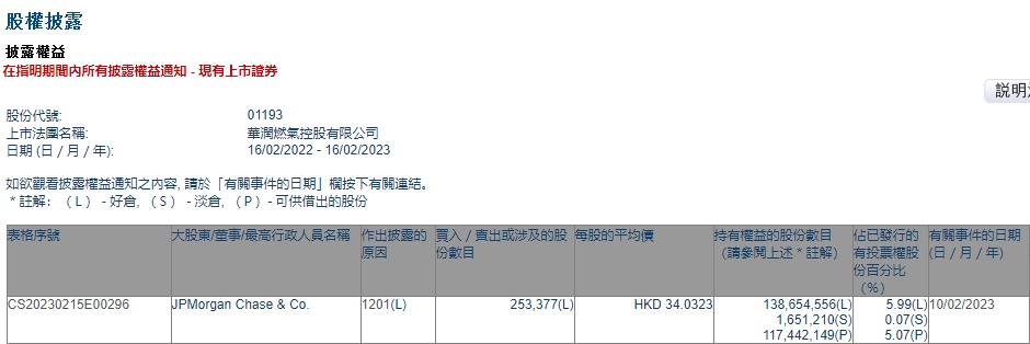 智通财经APP获悉,香港联交所最新资料显示,2月10日,小摩减持华润燃气(01193)25.3377万股,每股作价34.0323港元,总金额约为862.30万港元。减持后最新持股数目约为1.39亿股,最新持股比例为5.99%。