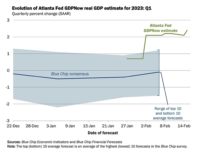 美国1月零售销售数据公布后,数位经济学家上调了对美国第一季度GDP的预期。亚特兰大联储也将对第一季度GDP增速的预测从此前的2.2%上调至2.4%。美国银行美国经济主管Michael Gapen表示:“这传递出的信息是,美国经济在第一季度似乎并没有迅速放缓的迹象。”