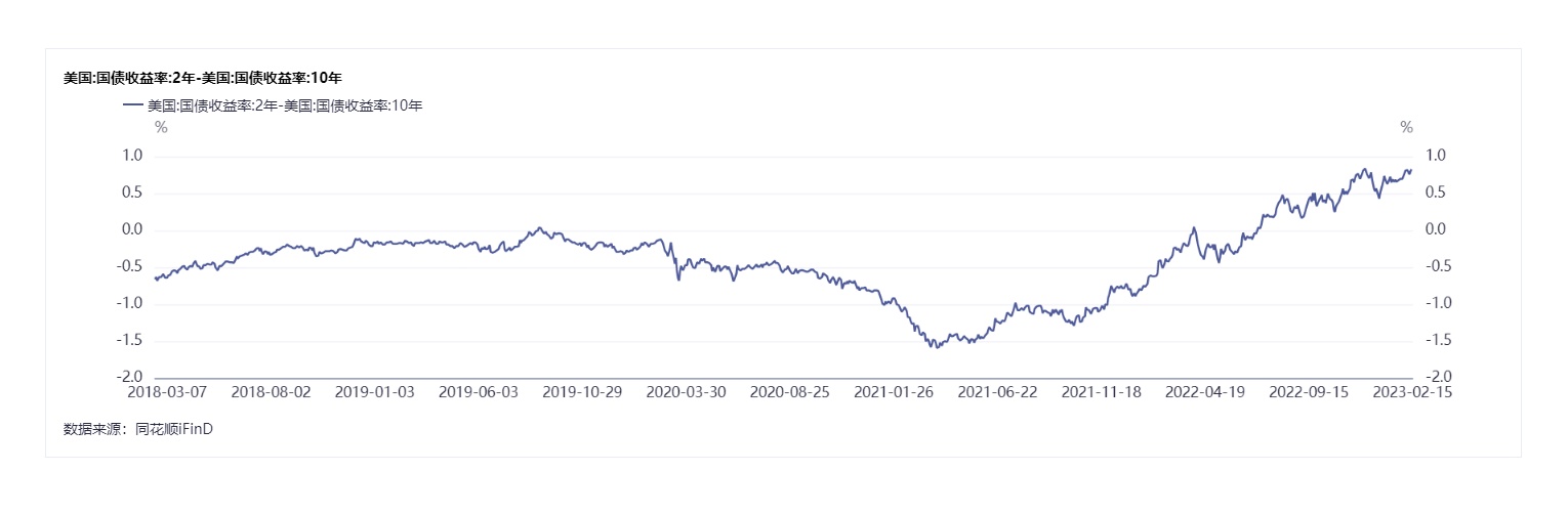 反映市场愈发担忧美国经济在美联储高利率环境下陷入衰退的最明显信号之一就是2/10年期美债收益率倒挂幅度愈演愈烈,这一倒挂程度显示出债券市场的交易员们对于美国经济陷入衰退的预期不断升温。除了2/10年期美债收益率曲线,短端和长端的美债收益率曲线更是全面倒挂,比如3个月期与10年期美债。