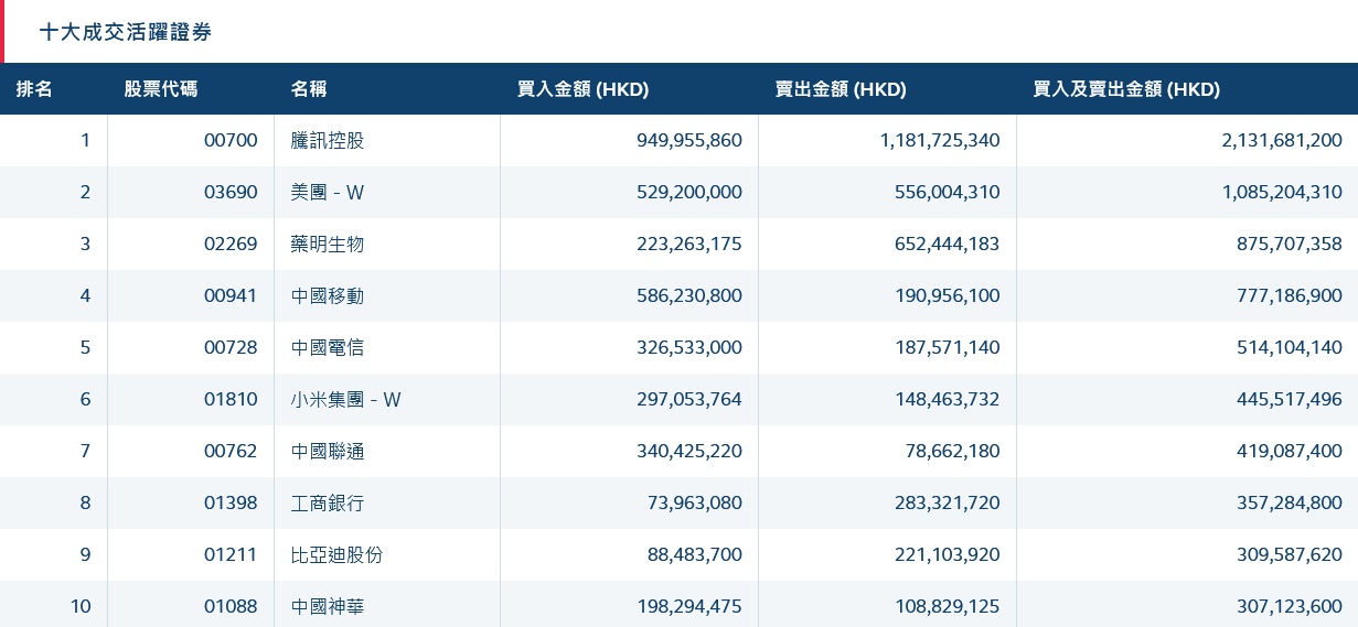 北水净买入最多的个股是中国移动(00941)、中国电信(00728)、美团-W(03690)。北水净卖出最多的个股是腾讯(00700)、工商银行(01398)。