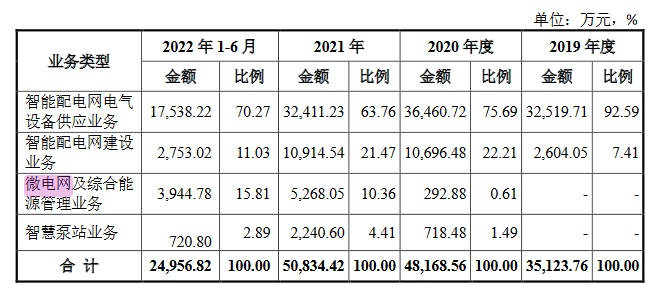 近年来,围绕“智能化”发展核心,华翔翔能进一步提升公司产品与服务的智能化水平。继2018年拓展了智能配电网建设业务后,公司基于微电网、新能源行业快速发展以及南方地区缺电带来的市场需求,于2019年开始研发微电网相关技术,并在2020年完成核心技术研发成功的基础上开拓了微电网及综合能源管理业务。2021年,公司微电网及综合能源管理业务实现营收5268.05万元,是2020年同期营收的近17倍,2022年上半年,该板块营业收入为3944.78万元。