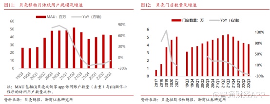 即使在2022年第三季度,贝壳再度扭亏为盈,其实质上也是为了降低成本而付出了业务规模缩水的代价:截至9月30日,活跃门店数量为39713家,同比下滑19.7%,活跃经纪人数量为372718名,同比减少20.4%。