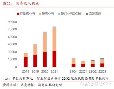 2022年第三季度,贝壳家装家居的净收入为18亿元,相比2021年同期的6000万元有大幅上涨,主要来自于公司完成了对圣都家装的收购并合并报表。截至目前,贝壳既有自身旗下的被窝家装,又有刚刚收购的圣都家装,进军家装业务的决心已然十分明确。