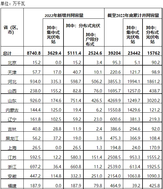 智通财经APP获悉,2月17日,国家能源局公布2022年光伏发电建设运行情况。数据显示,2022年全国光伏发电新增并网容量87.4GW,其中集中式光伏电站36.29GW、分布式光伏51.11GW(户用分布式25.26GW)。截至2022年底,全国光伏发电累计并网容量392.04GW,其中集中式光伏电站234.42GW、分布式光伏157.62GW。