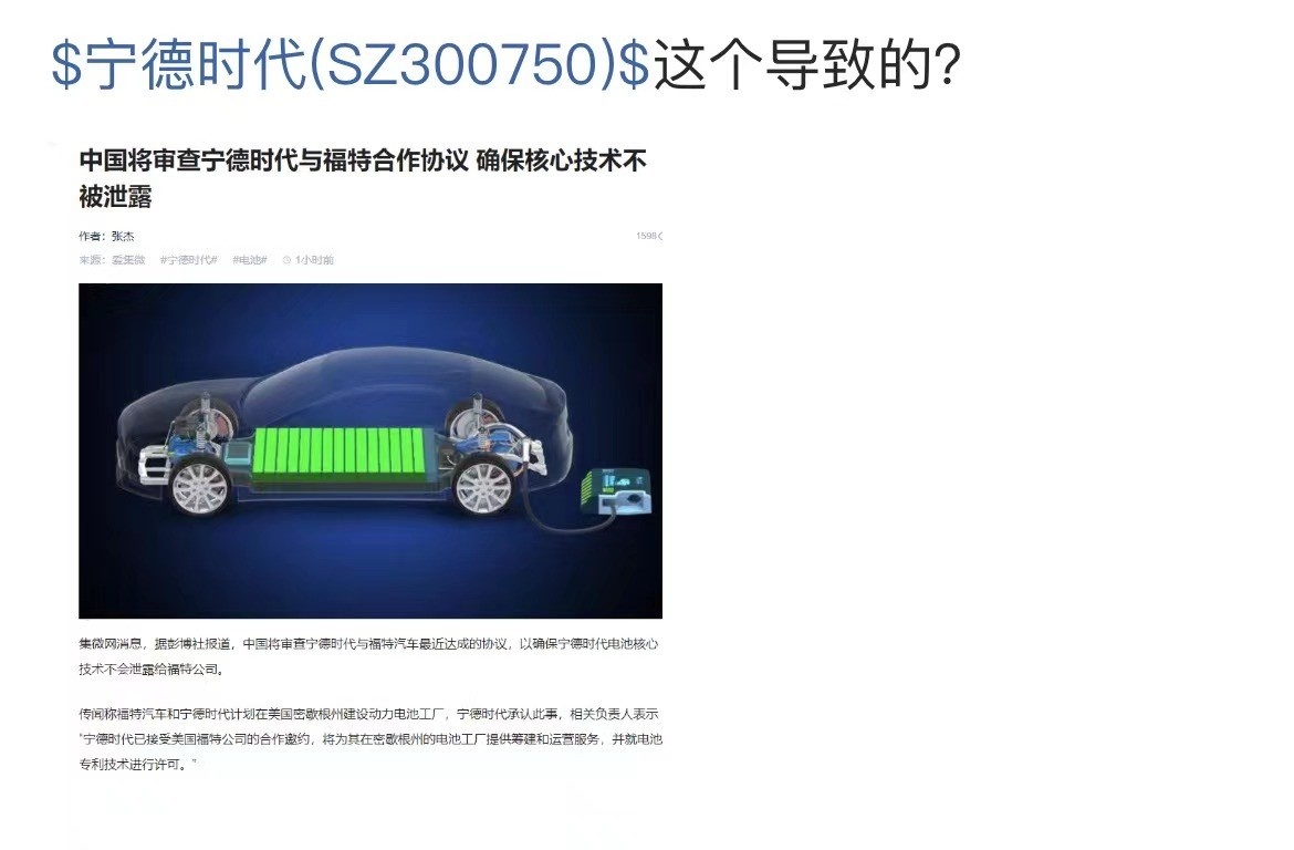 而对于权重股宁德时代的大跌,自选哥看到这条传闻。