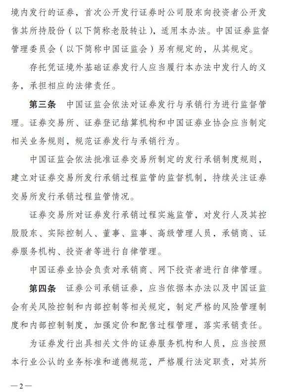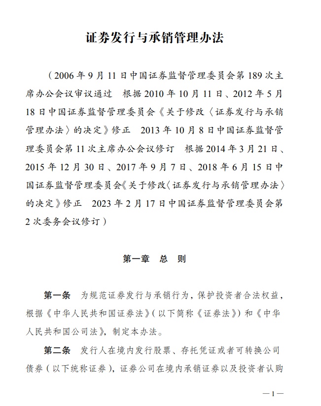 《证券发行与承销管理办法》已经2023年2月17日中国证券监督管理委员会2023年第2次委务会议审议通过,现予公布,自公布之日起施行。