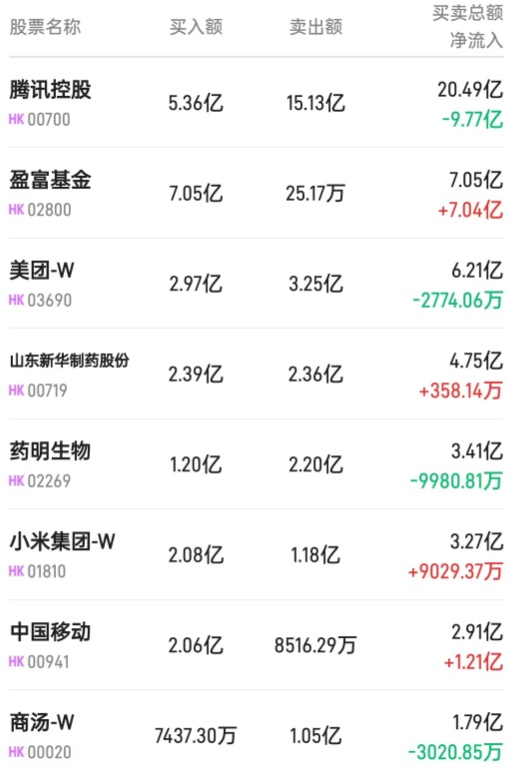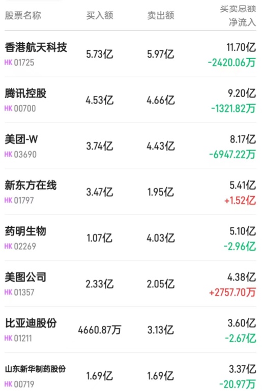 此外,盈富基金(02800)、中芯国际(00981)分别获净买入7.04亿、6437万港元。而香港航天科技(01725)遭净卖出2420万港元。