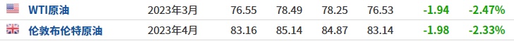 智通财经APP获悉,由于美元反弹,油价在周五延续跌势。截至发稿,WTI原油期货跌2.47%,报76.55美元/桶;布伦特原油期货跌2.33%,报83.16美元/桶。这是美油和布油连续第四天下跌,为去年12月初以来首次。