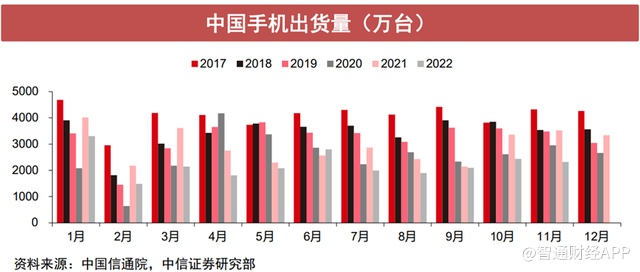 据智通财经APP了解,根据CINNOResearch的数据,受疫情反复、手机创新驱动力不足的影响,2022年国内智能手机出货量约2.55亿部,同比下降约19%,各季度跌幅约为14%-21%之间,创下2015年以来最低纪录,也是8年内首次跌破3亿部。