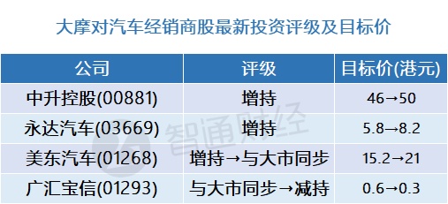 此外,美东汽车(01268)售后服务收入占比较少,同样因疫情因素下调公司2022年净利预测22%至7.25亿元,但分别上调2023-24年净利预测4%/11%至12.2及14.81亿元,以反映产品组合改善导致更好的保时捷新车利润率。至于广汇宝信(01293),认为它比其他宝马经销商经营效率低,2022年净利预测则由盈利7.13亿元下调至亏损6.32亿元。