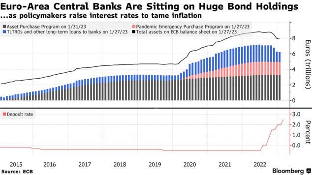 智通财经APP获悉,欧元区的各央行将在未来几周披露十年来量化宽松造成的首次重大损失,预示着一个新的审查时代来临以及纳税人或进行救助的前景。当欧洲央行周四公布年度业绩时,预计官员们将警告今年和明年整个地区会出现很大的资金缺口,因为利率上升导致通过量化宽松政策积累起来的存款成本飙升。