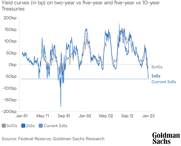 经济学家称,美国的经济增长前景正继续改善。本月早些时候,高盛研究部将未来12个月经济衰退的可能性从35%下调至25%,理由是该国劳动力市场数据持续强劲,且商业调查出现改善的早期迹象。如果经济表现继续证明弹性,投资者可能会更新他们的预测并建立对更高长期利率的预期,从而导致收益率曲线倒挂现象逐渐恢复正常。