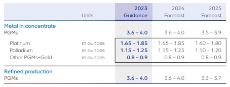 展望未来,英美铂业维持2023年铂族金属精矿PGM产量在360-400万盎司的预期,并预计2024年金属精矿PGM产量也在360-400万盎司之间。