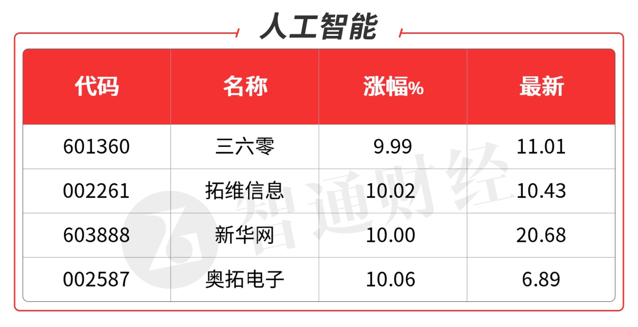 北京首个智算中心落地算力规模将达1000P,力争成为北方智能算力枢纽中心。chatGPT题材再受刺激,AI指数止跌。大块头中国电信(601728.SH)也在布局Ai方向,直接被大资金拉到涨停,板块人气快速恢复。反复提到的算力新品种叠加元宇宙概念拓维信息(002261.SZ)开盘弱转强,引领算力板块。其它辨识度高的有三六零(601360.SH),首板有AIGC元宇宙多重概念概念新华网(603888.SH),华为云AI龙头奥拓电子(002587.SZ)涨停。