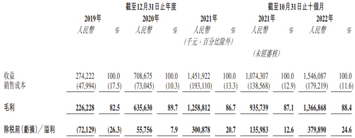财务方面,公司于2019年、2020年、2021年及截止2022年10月31日收益分别约为人民币2.74亿元、7.09亿元、14.52亿元及15.46亿元。