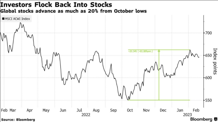 由于市场对美联储政策转向、中国重新开放以及欧洲能源危机缓解的希望提供了支撑,全球股市今年出现反弹。但通胀仍然是美国持续存在的问题的迹象开始再次显现,这给市场带来压力。此外,美联储鹰派官员的言论也引发了市场担忧,即美国利率峰值可能高于此前预期。