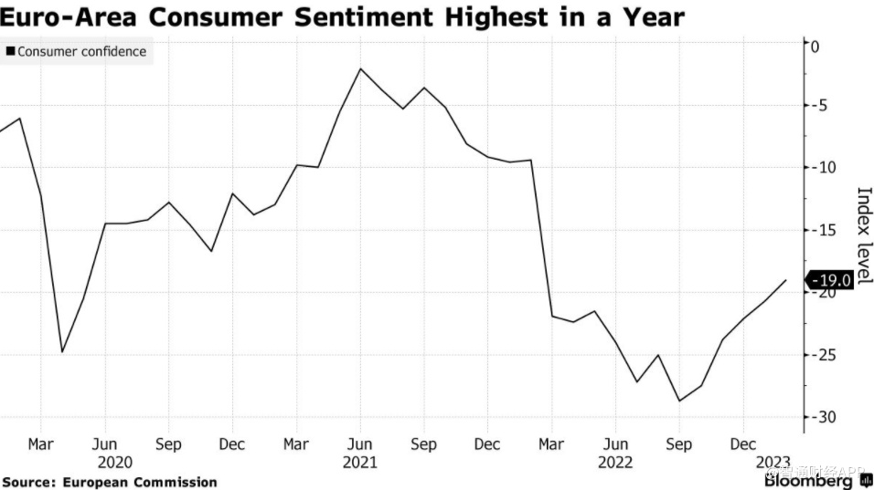 智通财经APP获悉,根据欧盟委员会的数据,欧元区2月消费者信心指数从1月份的-20.7升至-19,符合市场预期。欧元区消费者信心指数升至一年来最高水平,显示出该地区经济的韧性,以及人们对欧元区今年能够避免衰退的希望日益增强。