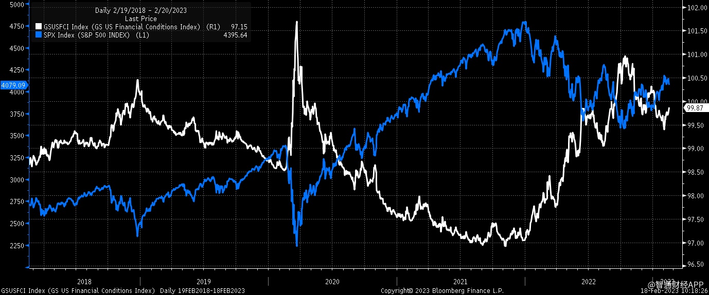 金融环境越紧,股市就会越低迷,这种紧缩环境的影响已经显现。高盛金融状况指数从2月2日的99.40升至99.87,这导致标普500指数在同一时间段内从4180点跌至4079点。随着经济形势进一步收紧,标普500指数可能会进一步下跌。