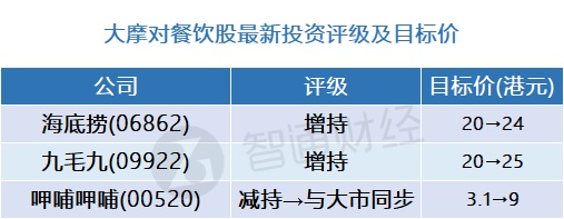 智通财经APP获悉,大摩发布研究报告称,估计海底捞(06862)、九毛九(09922)及呷哺呷哺(00520)今年净利润平均超过2019年水平45%。对三者2023/24年净利润预测较市场普遍预测高24%/22%,而收入预测则与市场普遍预测相近;并认为今年经营利润率将接近疫前水平。考虑到基本因素及风险回报,看好海底捞、九毛九。