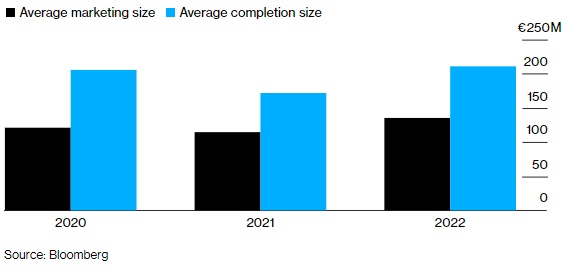 同时,该市场的流动性也足够强劲,数据显示,该市场平均交易规模从前一年的1.72亿欧元跃升至2022年的2.07亿欧元以上。
