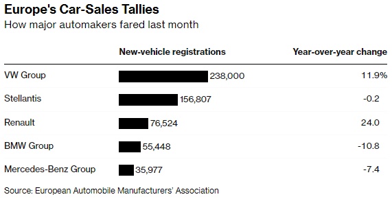 大众汽车和雷诺汽车预计,它们的销量将因确认订单和吸引买家的新车型而增长。这家法国汽车制造商在欧洲主要汽车制造商中涨幅最大,1月份上涨24%。