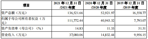 财务方面,于2019年、2020年、2021年,以萨技术实现营业收入分别为9956.15万元、1.48亿元、3.71亿元;同期,实现净利润分别为2787.22 万元、2767.37万元和1.42亿元。