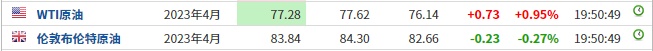3. 截至发稿,WTI原油涨0.95%,报77.28美元/桶。布伦特原油跌0.27%,报83.84美元/桶。