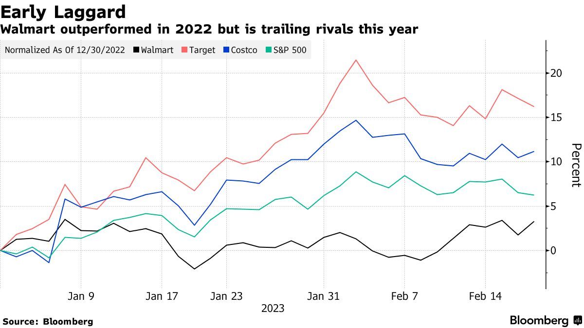 有分析人士认为,这一前景表明沃尔玛将从去年决策失误中缓慢反弹,当时沃尔玛错误判断了消费者需求从服装和家居用品等一般商品向必需消费品的转移趋势——主要因通货膨胀抑制了美国消费者购买力。不过此后该巨头调整了战略,总体来看2023财年仍然受益于强劲的杂货销售以及寻求便宜商品的高收入购物者的购买量激增趋势。