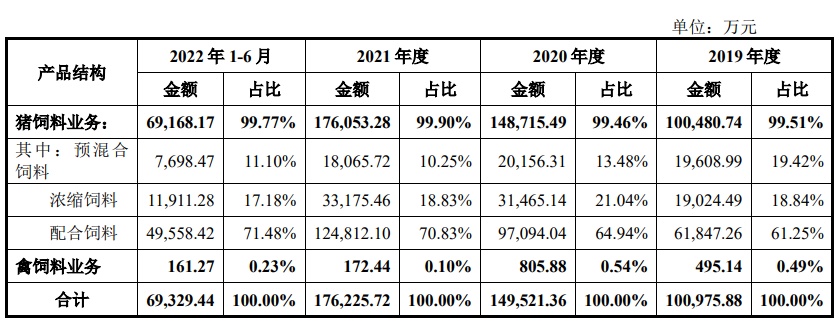 据招股书,播恩集团主营业务为饲料的研发、生产、销售,自成立以来,公司市场规模稳步扩大,目前已覆盖全国多个省市,发展成为集研发、生产、销售、服务为一体的全国性饲料提供商。该公司的主要产品为猪用饲料。