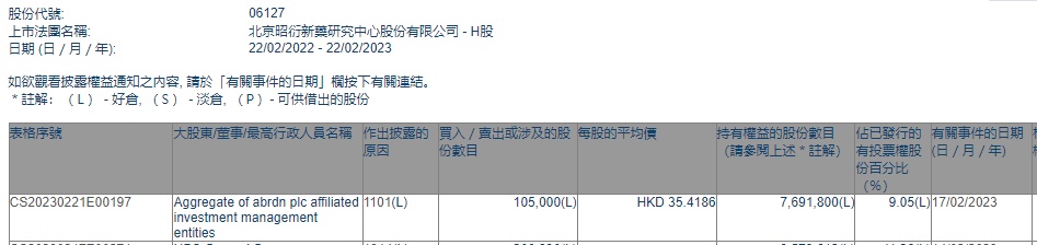 entities增持昭衍新药(06127)10.5万股,每股作价35.4186港元,总金额约为371.90万港元。增持后最新持股数目为769.18万股,最新持股比例为9.05%。