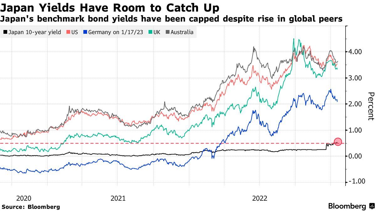 日本国债收益率仍有追赶空间——尽管全球同类收益率有所上升,但日本基准国债收益率仍受到限制