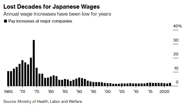 日本工资失去的“数十年”——多年来,日本工资年增长率一直很低