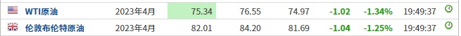3. 截至发稿,WTI原油跌1.34%,报75.34美元/桶。布伦特原油跌1.25%,报82.01美元/桶。