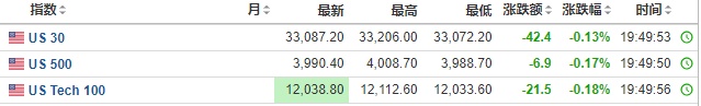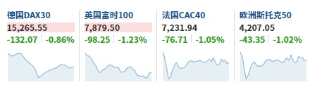 2. 截至发稿,德国DAX指数跌0.86%,英国富时100指数跌1.23%,法国CAC40指数跌1.05%,欧洲斯托克50指数跌1.02%。