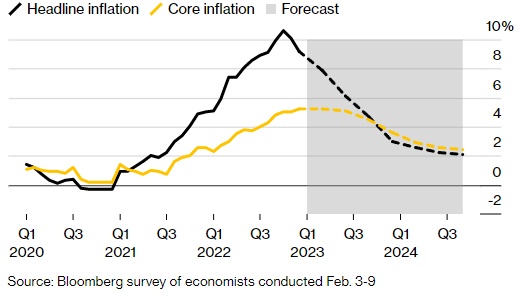 政策制定者担心在与通胀的斗争中过早放松政策,通胀虽然在回落,但仍接近其两位数的历史峰值,高于欧洲央行2%的最终目标水平。尽管总体数字有所下降,但顽固的潜在高物价压力仍是许多欧洲央行官员关注的焦点。欧元区1月份核心通胀率仍保持在创纪录水平。