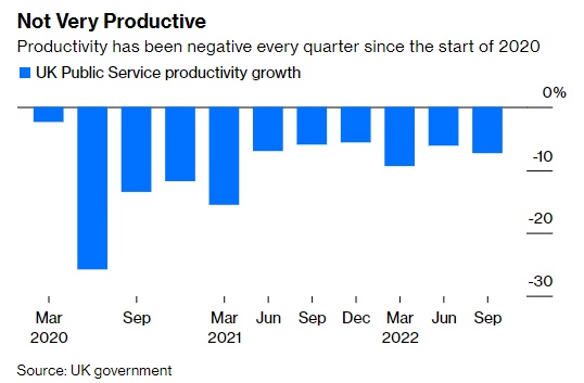 更糟的还有公共部门提供的服务已经恶化到令人震惊的程度。这就是英国公共部门生产率大幅下降的原因。这不仅让认为怀疑其他国家的生产率是否也下降了,不过,由于其他大国没有公布公共部门的生产率数据,具体事实也不得而知。
