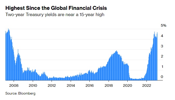全球金融危机以来的最高水平——2年期美债收益率接近15年来的高点