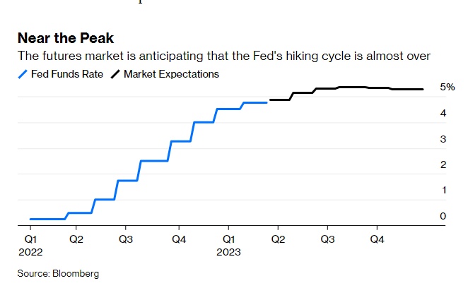山顶附近——利率期货市场预计美联储的加息周期即将结束,但峰值预期比此前高了不少