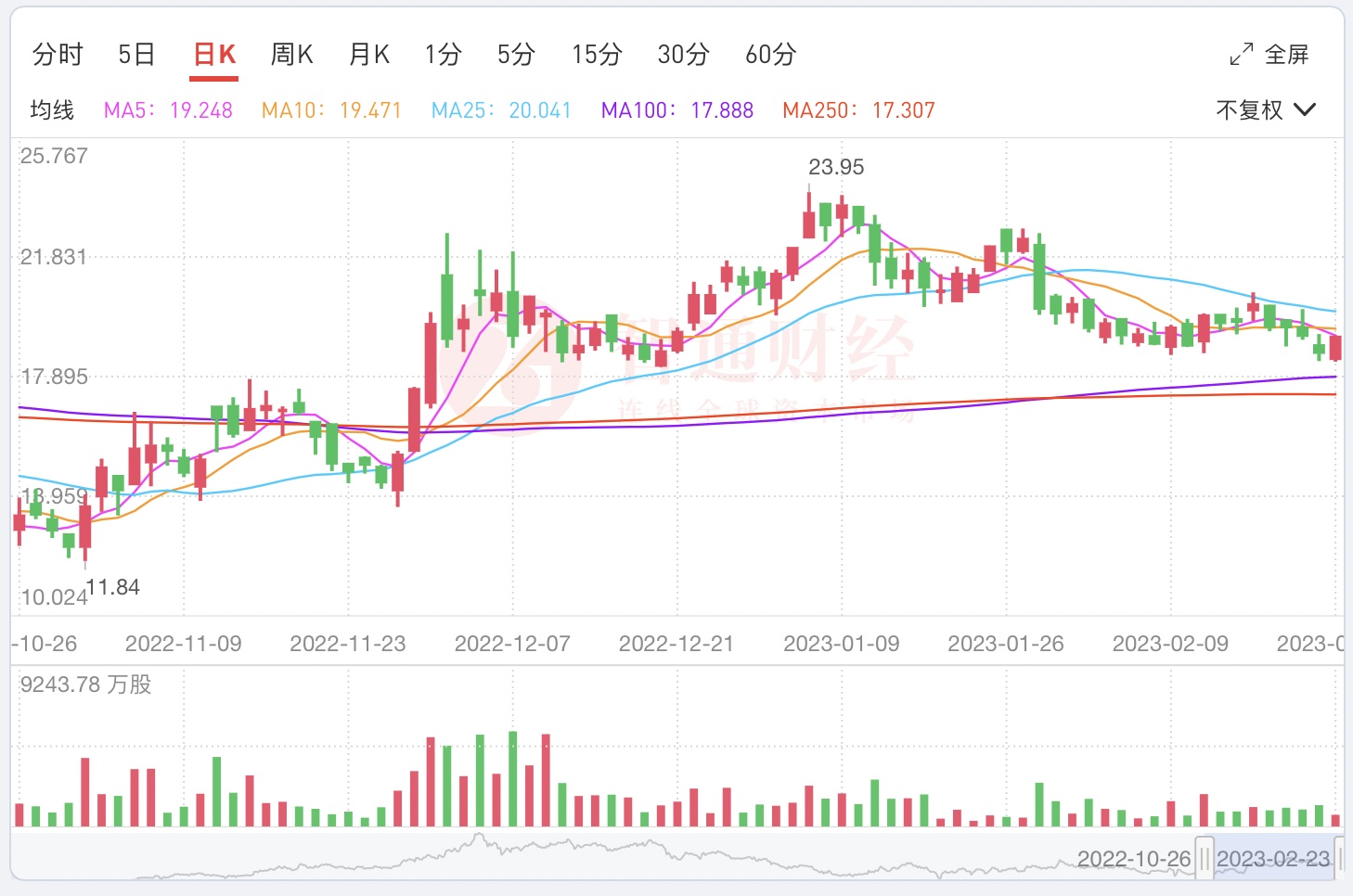 除了业绩,九毛九的股价也持续承压。智通财经APP观测到,自2023年1月初创下年内高位后,九毛九便一直处于震荡下行之势中。截至2月23日收市,公司股价较年内高位已下滑20%。