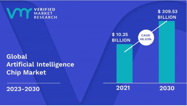 根据知名研究机构Verified Market Research 在今年发布的最新AI芯片研报,该机构预计到2030年用于AI的芯片市场规模将达到3095.3亿美元,2023年至2030年的复合年增速高达惊人的46.03%。该机构表示,对解决数学和计算问题的更有效系统的需求,以及量子计算的出现、人工智能芯片在机器学习等新环境中的广泛应用,预计将推动全球人工智能(AI)芯片市场的快速发展。