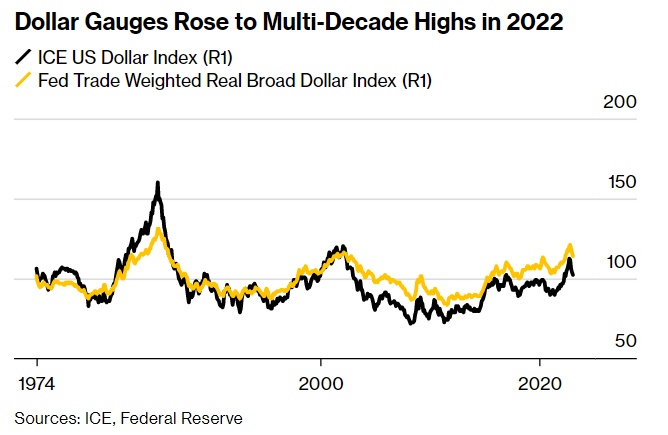 这可能会在一定程度上减轻2022年全球市场遭受的破坏。当时美元走强造成了种种影响:由于食品和石油成本上涨、通胀上升,加纳等国家被推向债务违约的边缘,股票和债券投资者则承受着巨额损失。