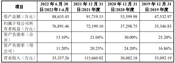 财务方面,于2019年度、2020年度、2021年度,公司实现营业收入约为3.51亿元、3.01亿元、11.57亿元。净利润分别约为2903.23万元、2008.52万元、2.66亿元。