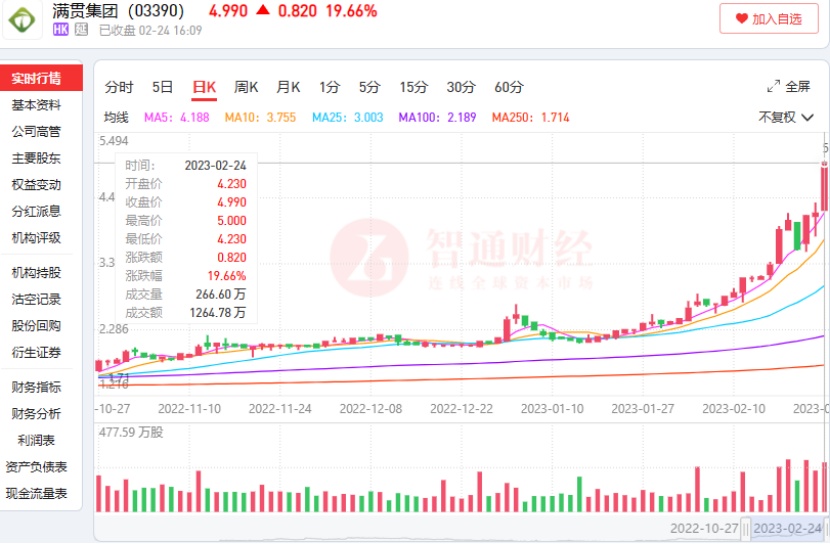 今年2月24日,满贯集团盘中股价最高拉升19.66%,达到5港元,期间累涨幅度达到257.1%,同时也创下公司上市以来的股价新高。要知道,该票在IPO打新时,一度被众多“打新KOL”轻视:放弃、谨慎、博傻……