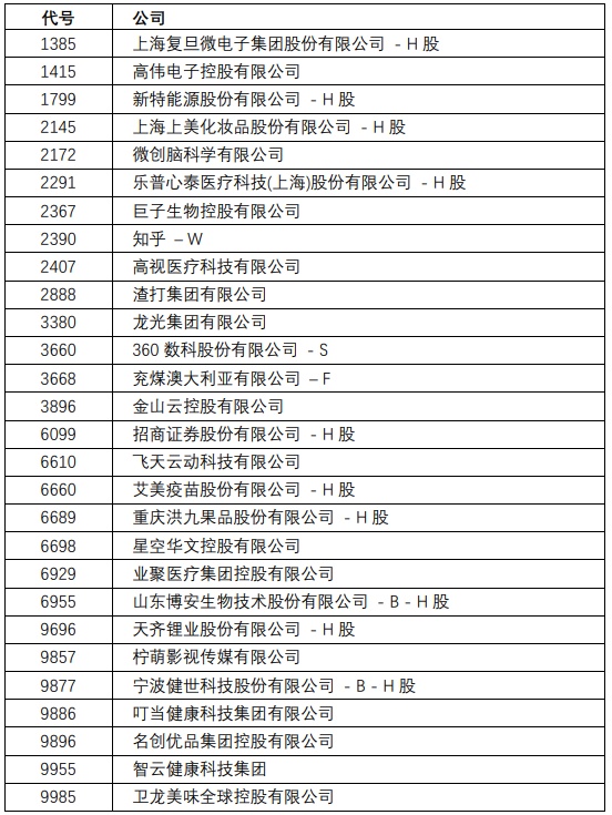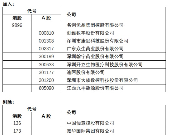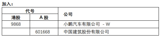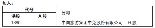 恒生沪深港通中国企业指数成份股将有以下的变动,成份股数目维持80只。