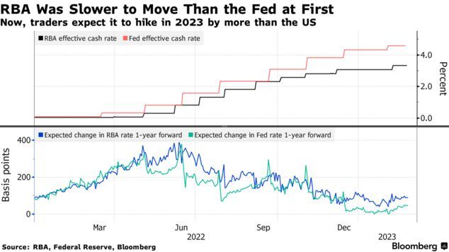 澳洲联储是去年10月首批放缓步伐至加息25个基点的央行之一,而美联储仍在以75个基点的幅度提升利率。当时澳大利亚的失业率接近50年来的最低水平,职位空缺处于历史高位,洛威希望保留其中的一些成果。