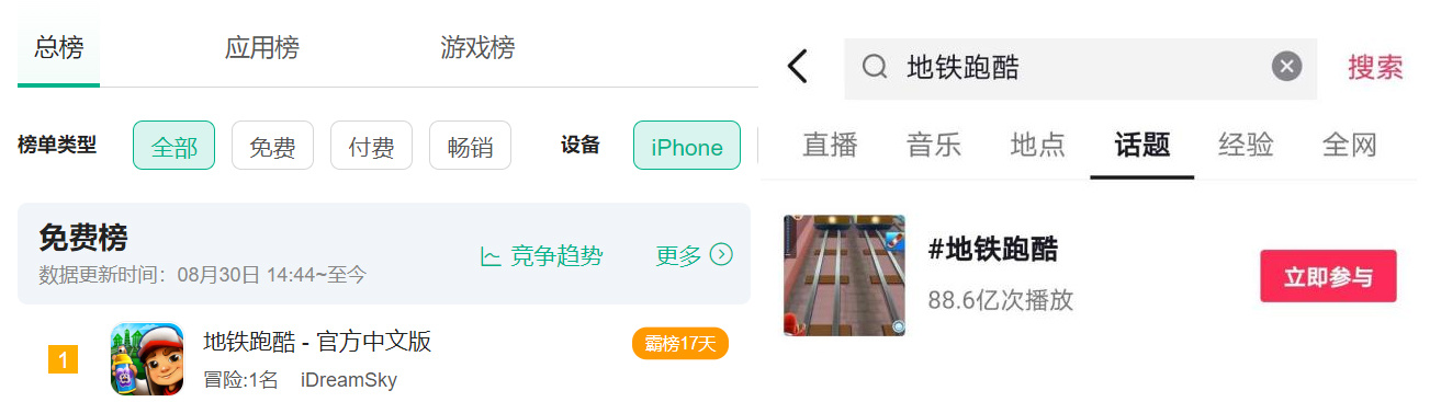 据七麦数据显示,2022年8月—9月,运营超10年的“老游戏”《地铁跑酷》连续32天霸榜iOS游戏免费榜第一,100多万的DAU也重回2000万,并荣获“2022年度游戏十强优秀移动游戏”提名。