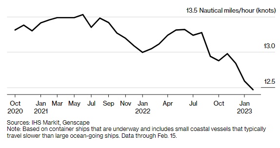 热衷于捕捉全球经济脉搏的大宗商品观察人士应该注意到,作为贸易命脉的集装箱船的航速降至自2020年10月开始跟踪数据以来的最低水平。如图1所示,由于没有动力提高航速或在服务航线上增加更多船只,这些船只只能等待亚洲疲软的钢铁出口回升,以及从世界各地进口原材料和农产品。